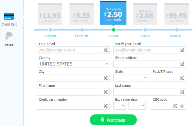 每月付款中的 1 美元捐赠给 EFF。高级会员可以使用 Open加速器、PPTP、L2TP 或 IPSEC(IKEv2 和 IKEv2)协议访问他们在全球 12 个国家/地区的 加速器 服务器。
